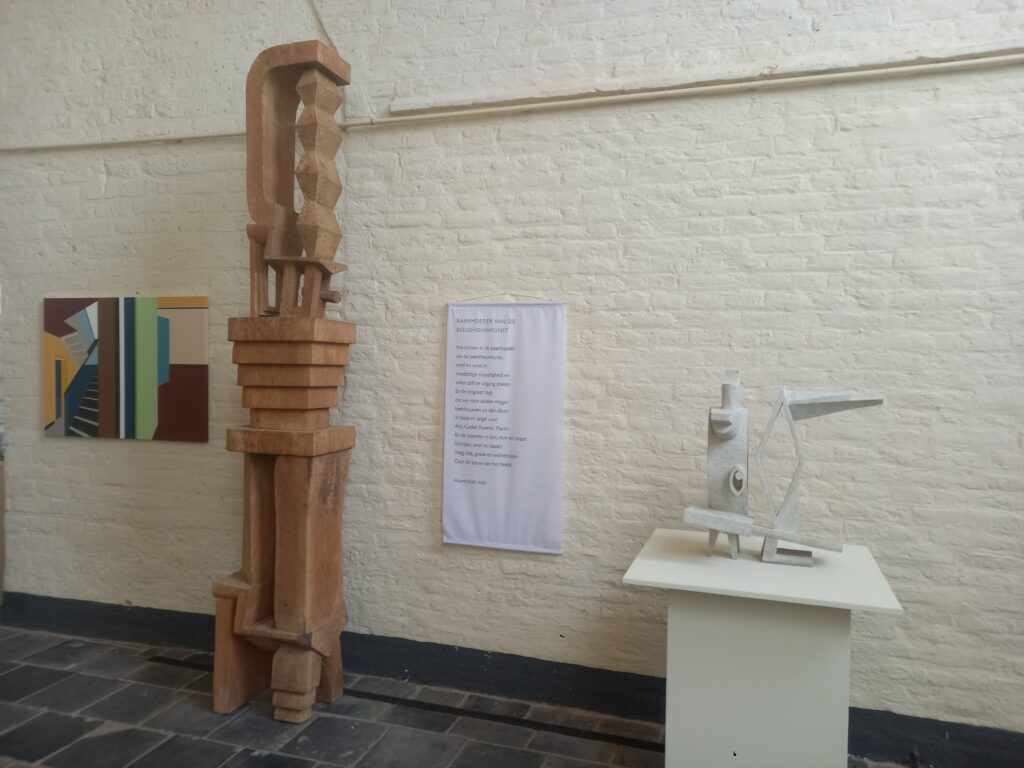 Het is nu wel voldoende beargumenteerd dat er, bij het kijken naar kunst, een dimensie is achter of in het kunstwerk, een diepere laag, een vergezicht. Misschien is dat inmiddels, excusez le mot, een open deur. Terug nu naar het ding zelf, het werkstuk waaraan de kunstenaar zijn uren in het atelier heeft besteed. Wetend hoe belangrijk doorzicht is, komt er een bijzondere gevoeligheid naar boven als het gaat om materiaalgebruik. We zien lijnen van potlood, verf en draad. Volièregaas. Papier waarin geknipt is. En ook verf op doek, hout, gipsplaat, brons en staal. Wat opvalt is de intensiteit en de precisie waarmee ze zijn bewerkt. Geen moeite was de kunstenaars teveel om die stoffen tot spreken te brengen. Dikwijls lijkt het er zelfs op dat ze zich doelbewust monnikenwerk op de hals hebben gehaald. Hier gaat het zonneklaar niet alleen over wat ze hadden willen zeggen, alles hangt af van de manier waarop.