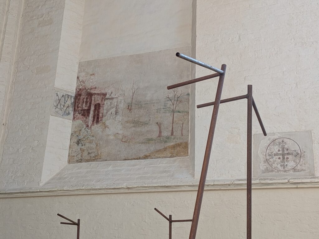 De tentoonstelling verwijst overal naar de wereld om ons heen en hoe we die waarnemen. Naar licht, ruimte, architectuur, landschap. Bij alle werken, hoe verschillend in uiterlijk ook, stel je je de vraag hoe je jezelf fysiek verhoudt tot de ruimte die daar ontstaat. Vanzelf wordt ook de blik geopend op de Bergkerk waar licht en transparantie zo’n belangrijke rol spelen in het ervaren van de ruimte.